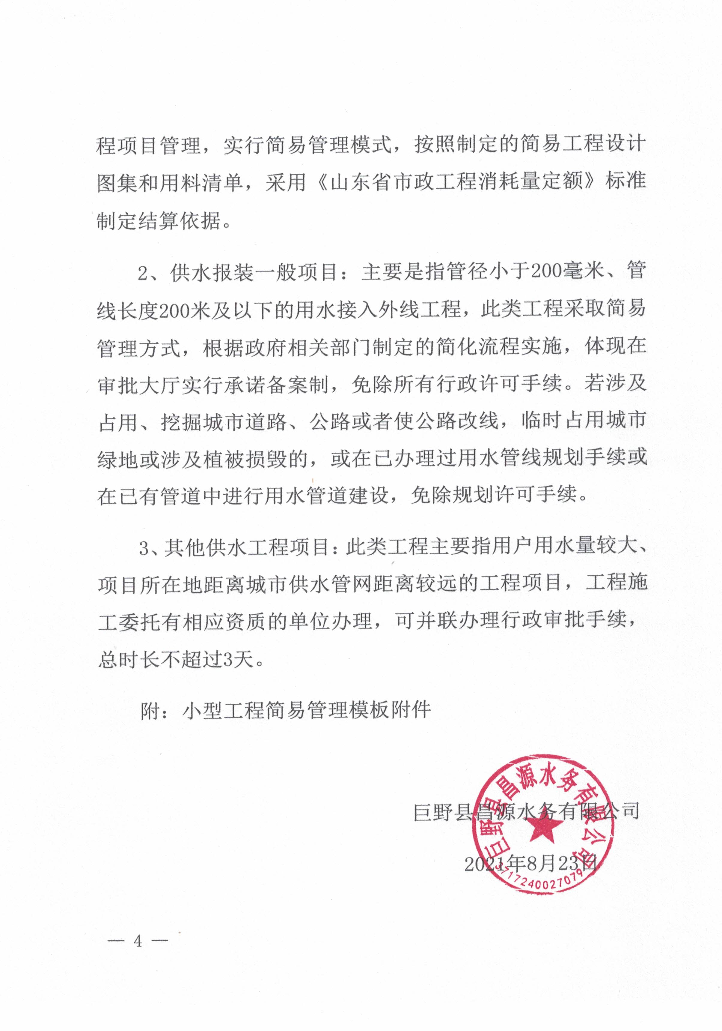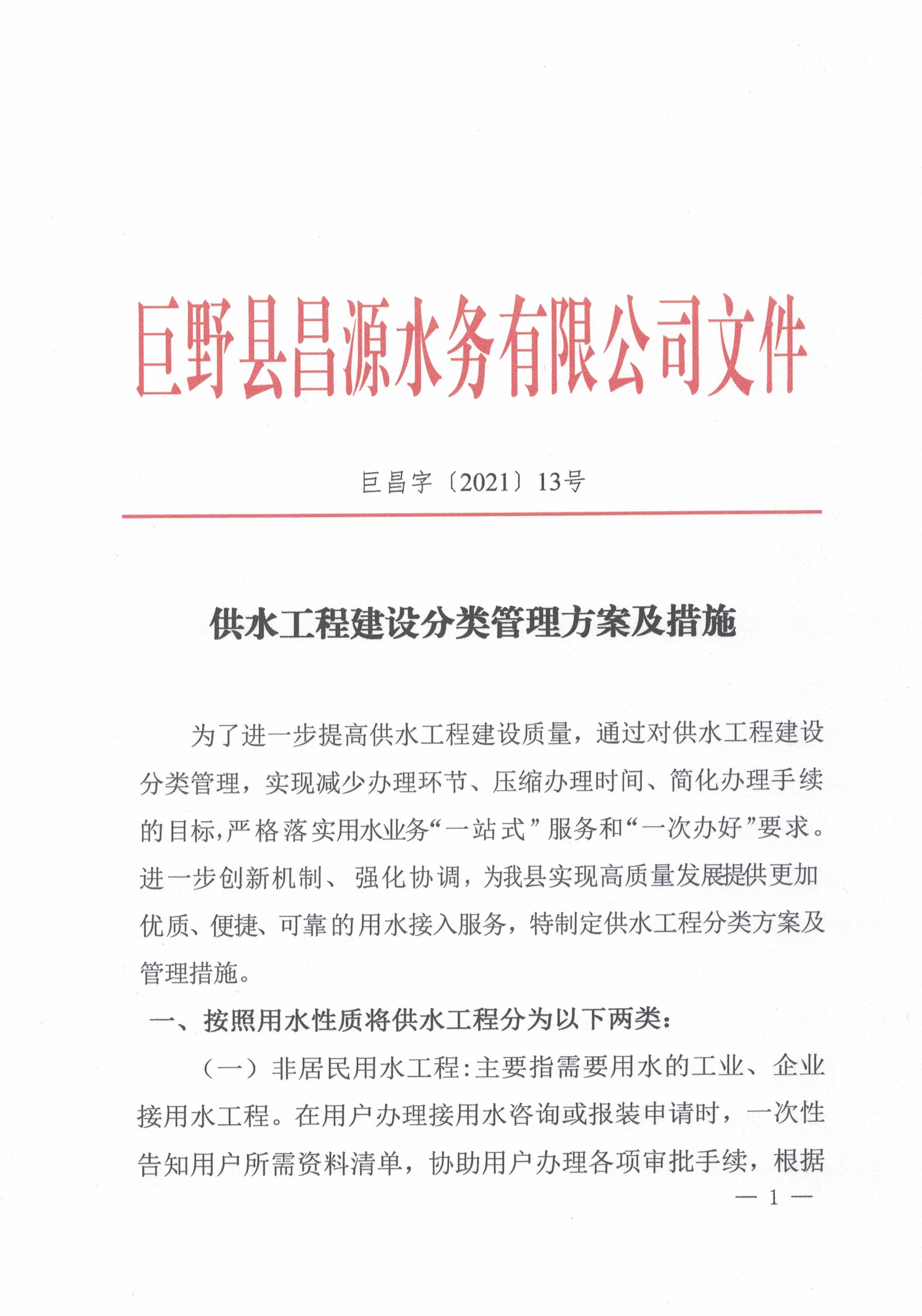 巨野縣昌源水務(wù)有限公司供水工程建設(shè)分類管理方案及措施