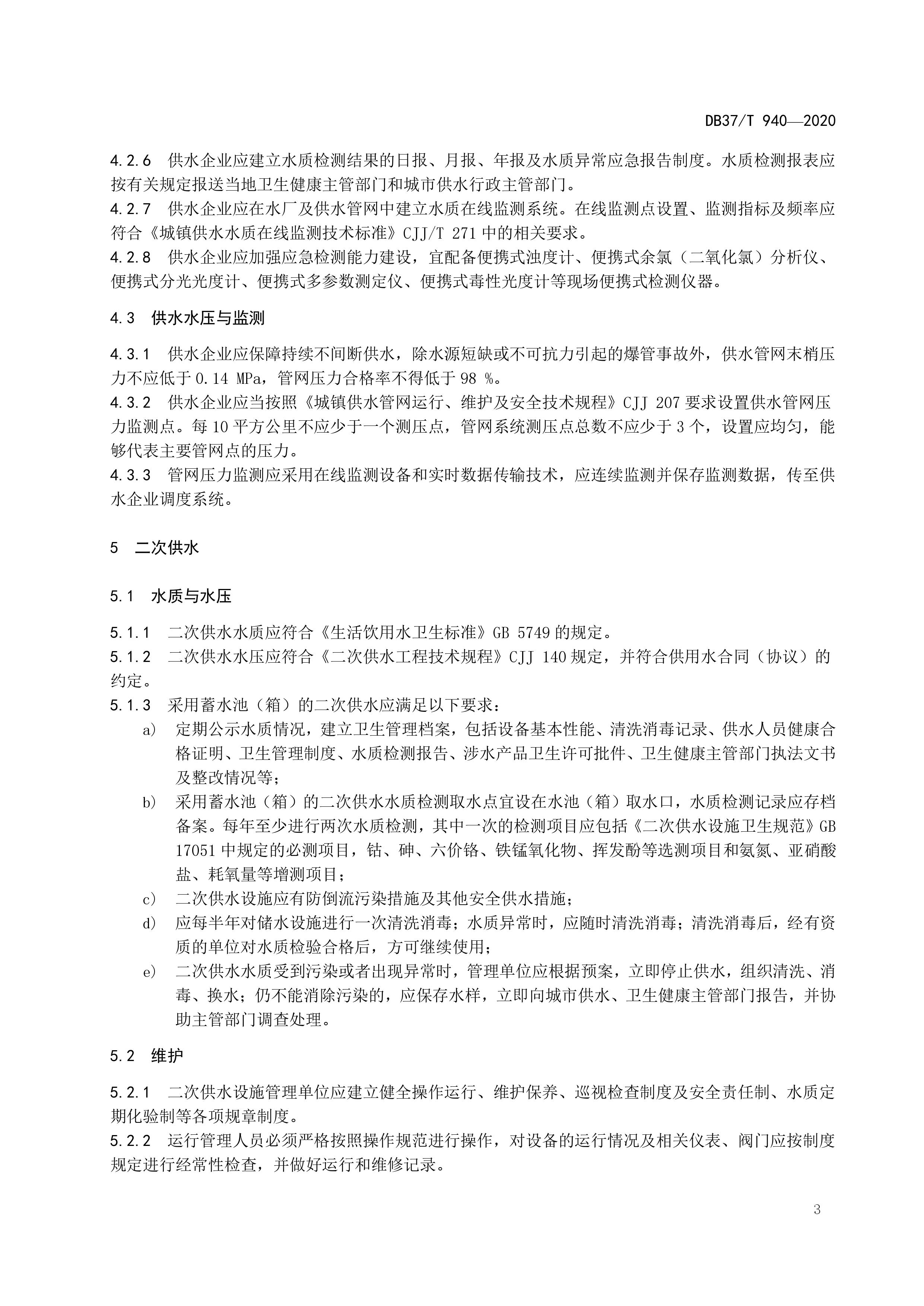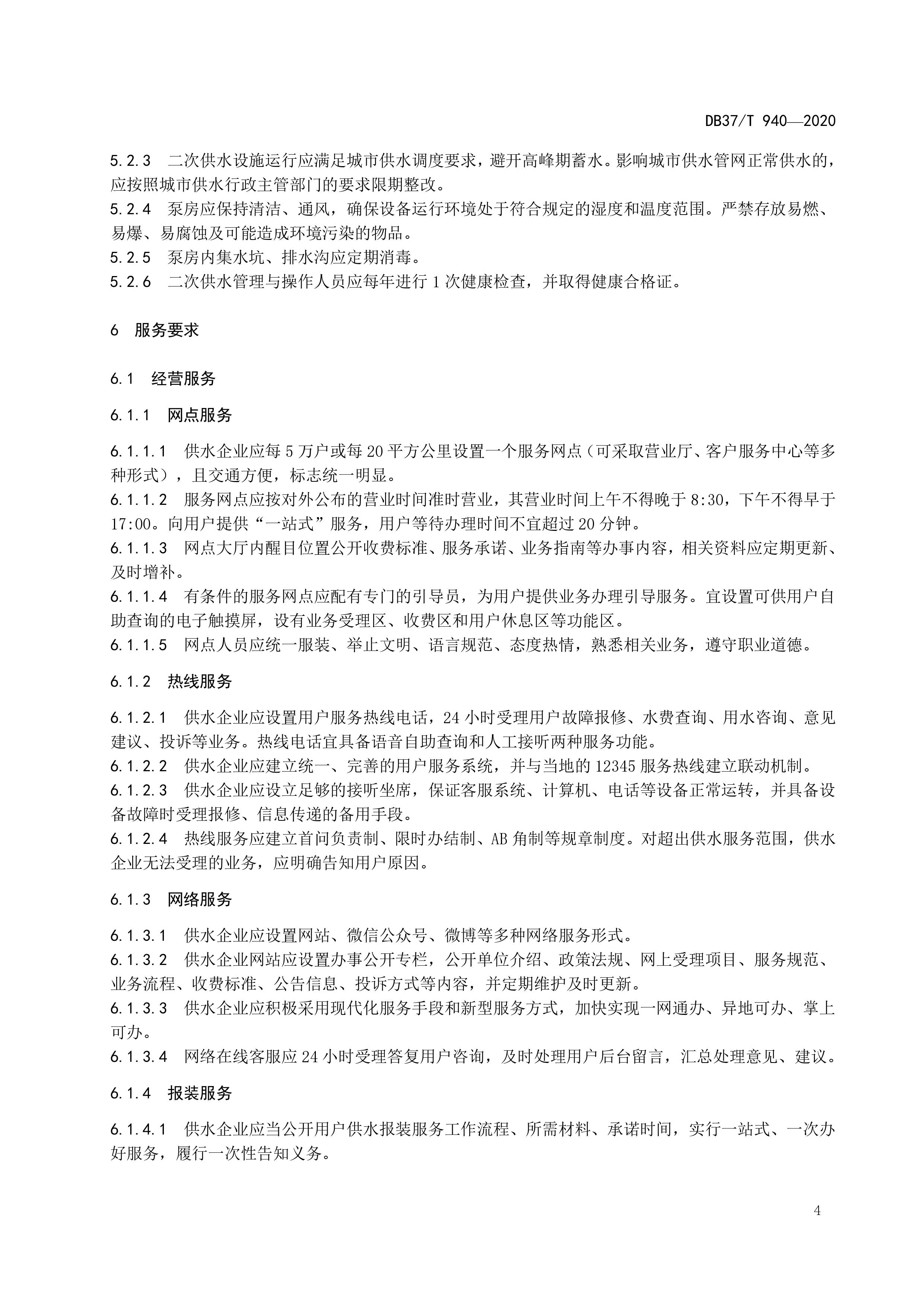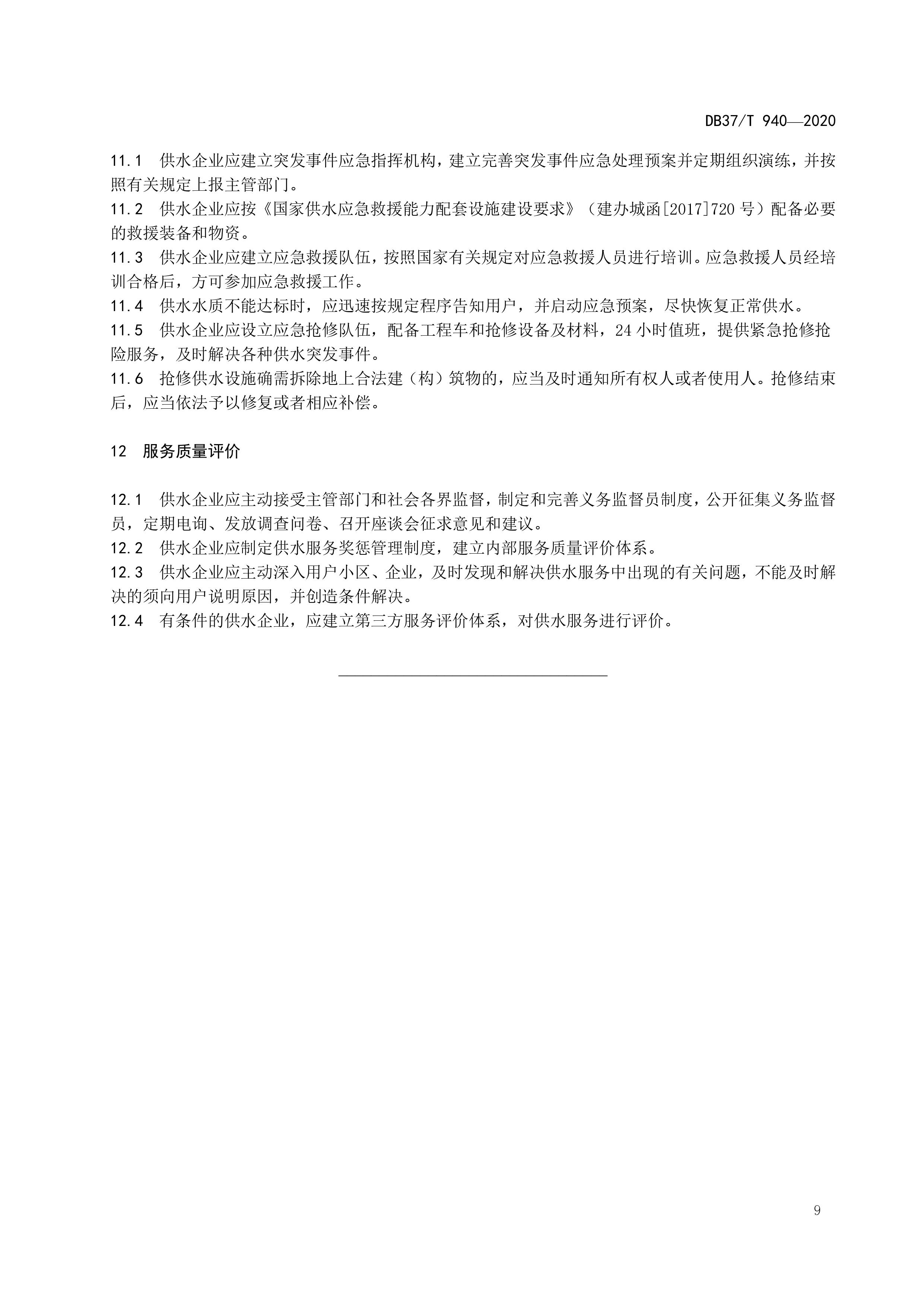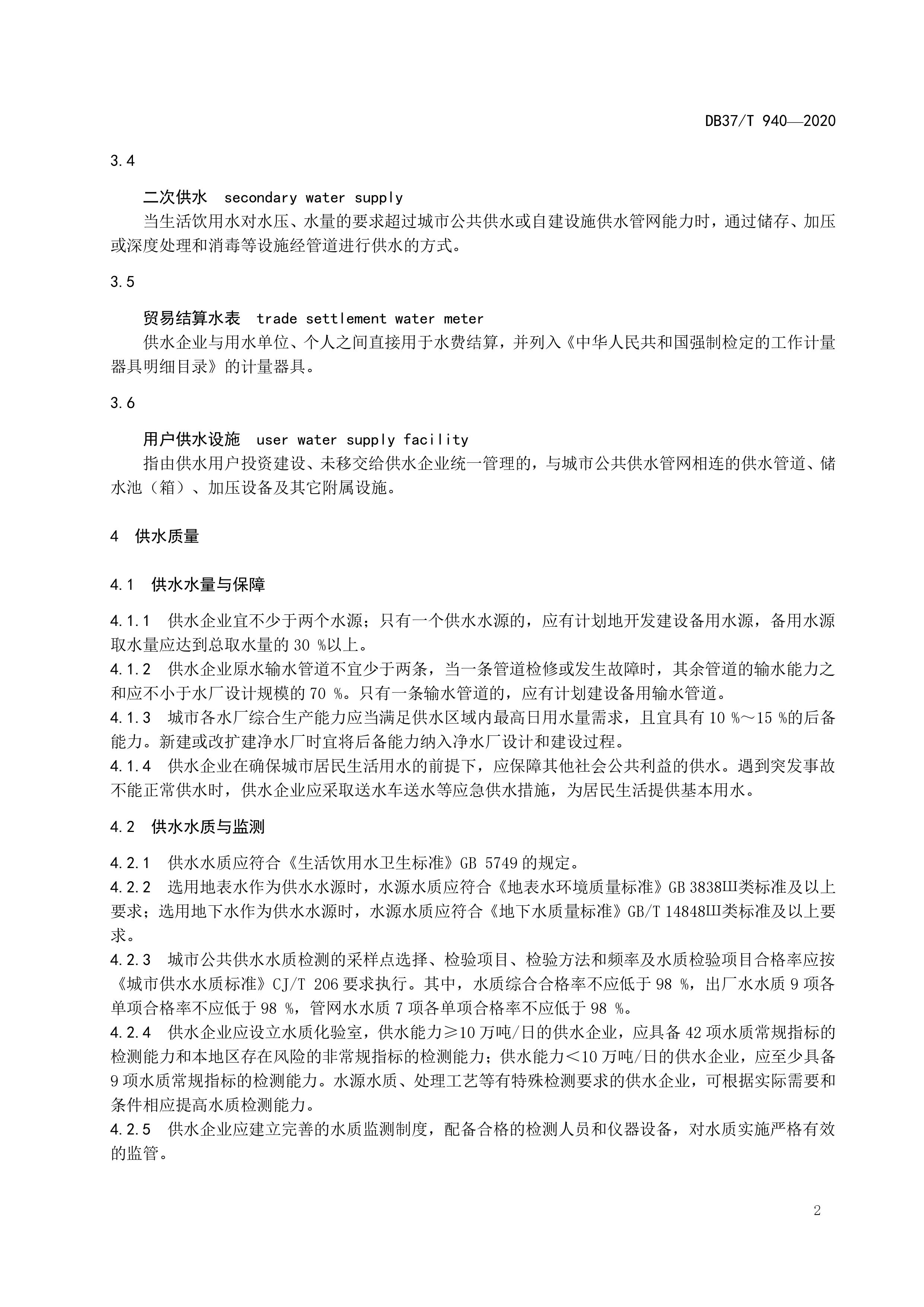 山東省城市公共供水服務(wù)規(guī)范(DB37T 940-2020)