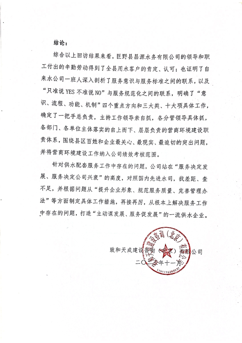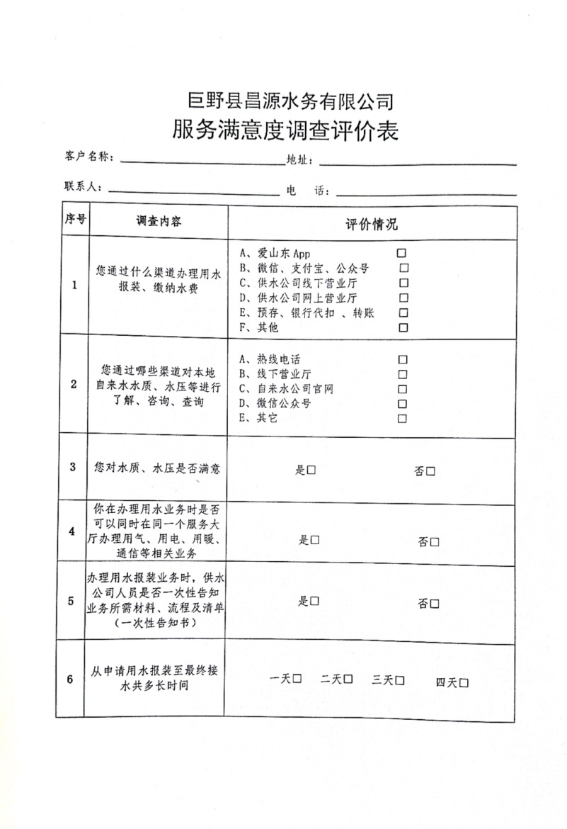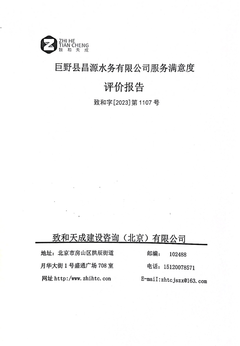 巨野縣昌源水務(wù)有限公司服務(wù)滿意度評價報告